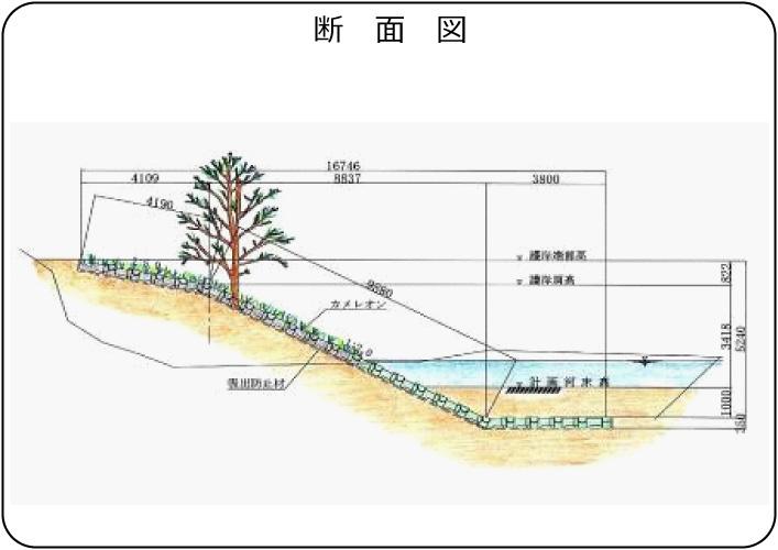 エコトーンのツルヨシは小魚の住み家 カメレオンは水際にも土が豊富に残せるので水際植生の復元がよく、ツルヨシなどの水際植生により良好なエコトーンが形成される。